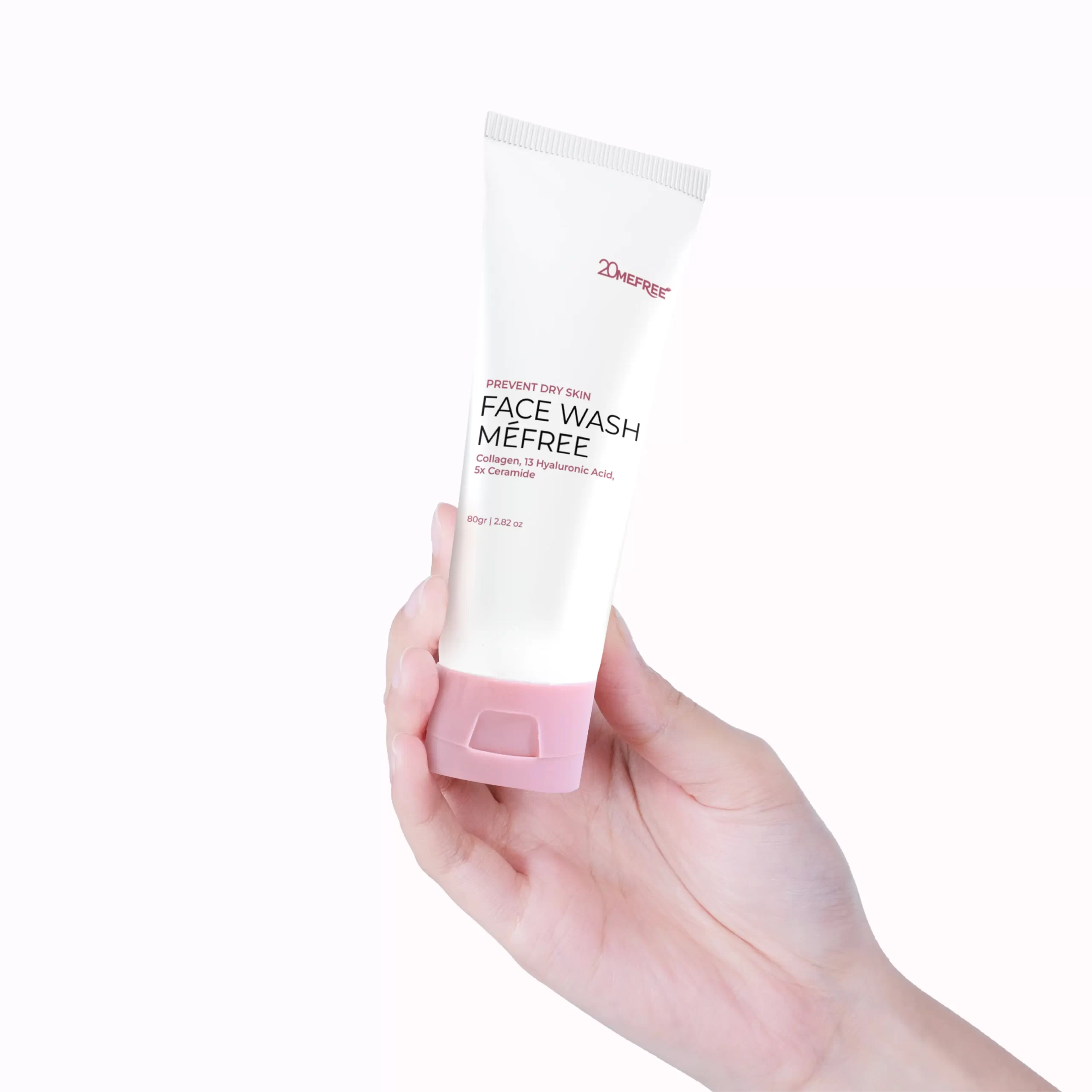 FACE WASH MEFREE Facial Foam yang diformulasikan dengan kandungan Collagen agar kulit tampak lebih kenyal, dilengkapi aktif 5x Ceramide yang dapat memperbaiki skin barrier serta aktif 13x Hyaluronic Acid yang membantu menghidrasi kulit dari lapisan kulit terluar (epidermis) sampai lapisan kulit terdalam (dermis). kombinasi 3 bahan utama ini menjadikan 20mefree Face wash menjadi facial foam yang bukan hanya membarsihkan kulit wajah tapi juga menutrisi wajah hingga lapisan kulit terdalam (dermis).