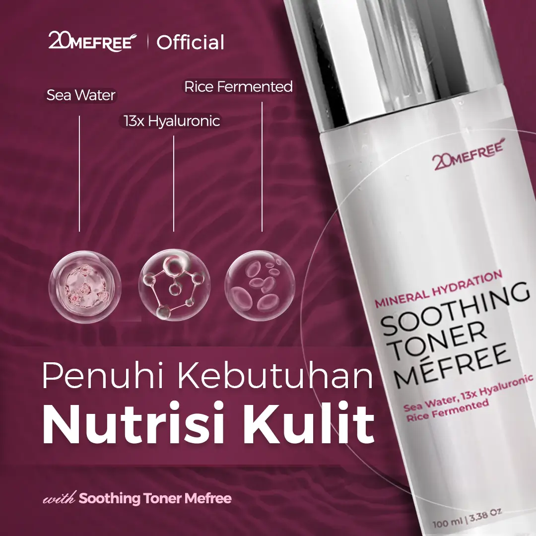 Dengan menggunakan Soothing Toner dari 20MeFree, Anda dapat merasakan kulit yang lebih lembab, sehat, dan bercahaya. Toner ini adalah solusi sempurna untuk menjaga kesehatan kulit sehari-hari dan memberikan perlindungan optimal dari efek buruk lingkungan. Rasakan perbedaannya dan nikmati kulit yang lebih segar dan terawat dengan Soothing Toner dari 20MeFree.